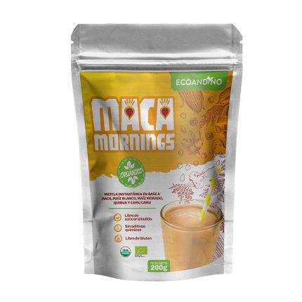Deliciosa mezcla instantánea a base de maca, maíz blanco, maíz morado, quinua y camu camu. Estas deliciosas mezclas en polvo son excelentes para la salud, porque no contienen azúcar añadida, no contienen aditivos químicos ¡y son totalmente orgánicas! Disfrutar de los Mornings de Ecoandino te dará todos los beneficios de los superalimentos. La Maca es un súper alimento ideal para un estilo de vida saludable.