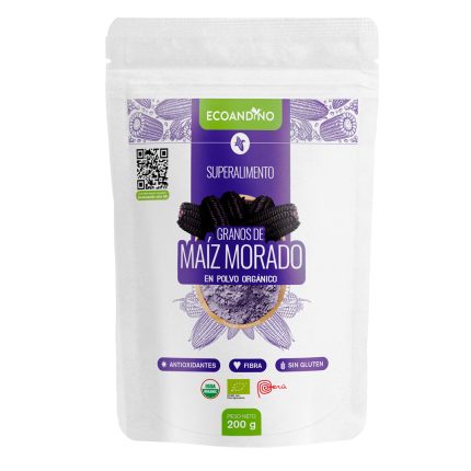 El maíz morado es un alimento altamente nutritivo y beneficioso para la salud. Este superalimento andino ancestral, contienen antocianinas especiales, un tipo de flavonoide complejo que produce colores azules, morados o rojos. Las antocianinas son antiinflamatorias y estimulan la regeneración del tejido conectivo; además de ser un poderoso antioxidante.