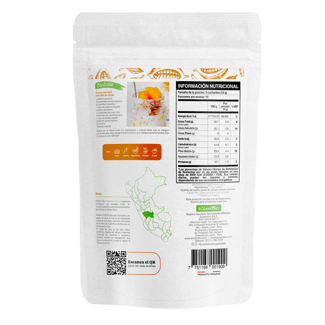 Nuestro cacao criollo ceremonial se cosecha en Satipo, región del centro de Perú en el departamento de Junín. Nuestros productores asociados Asháninka del río Ene, aseguran la calidad del cacao criollo orgánico de Ecoandino.